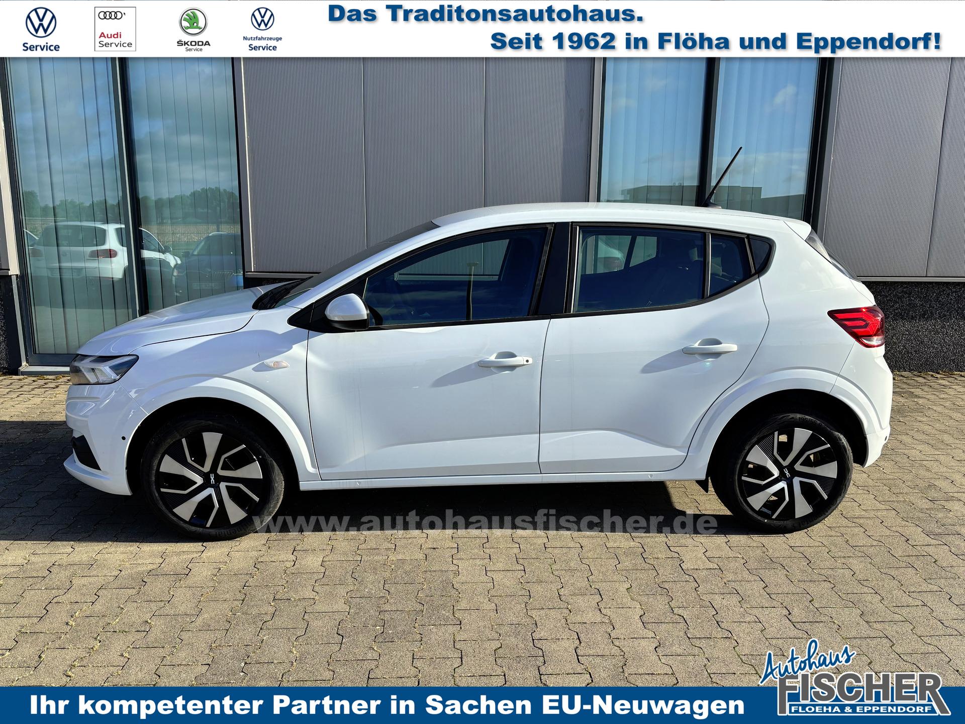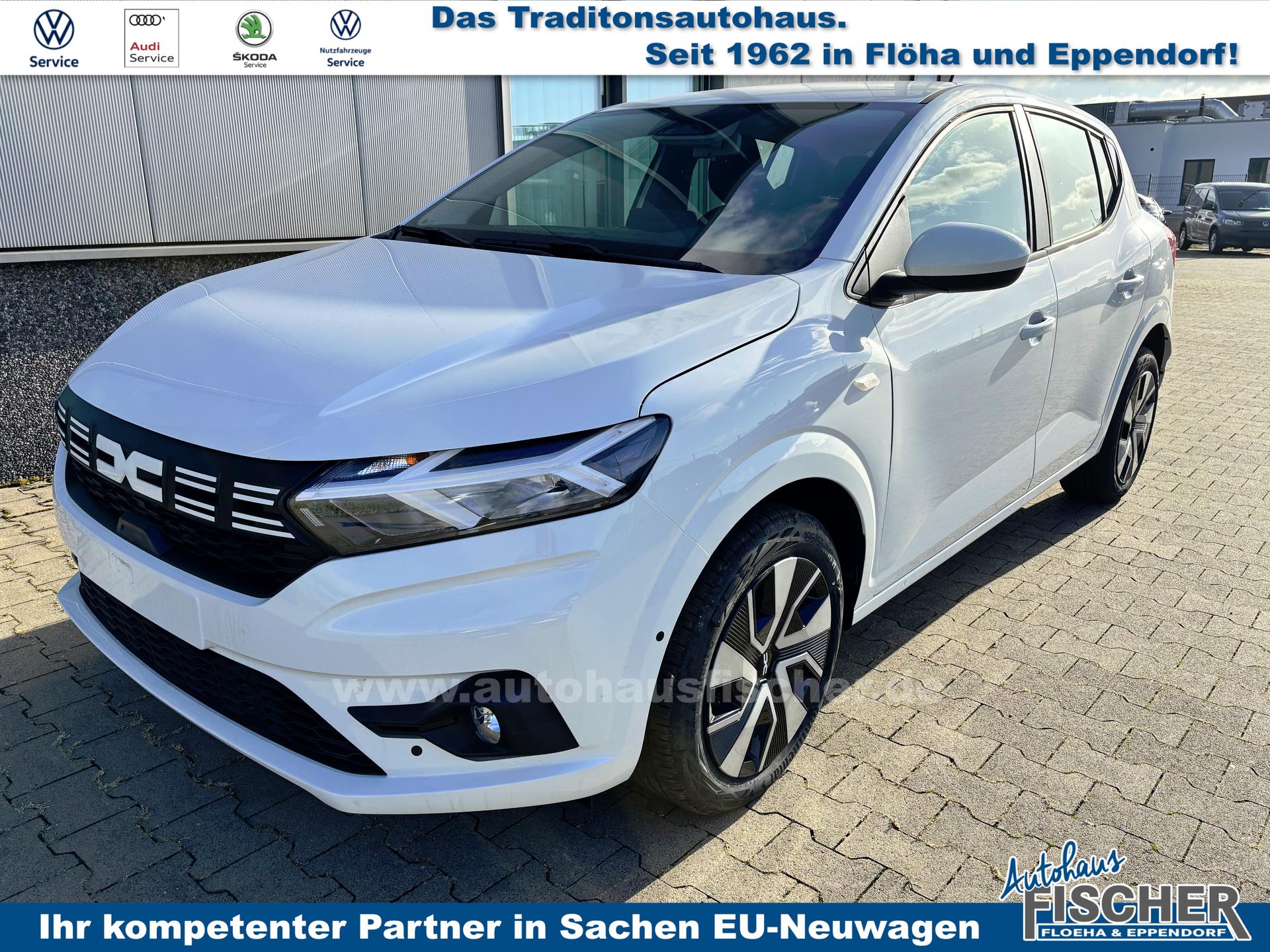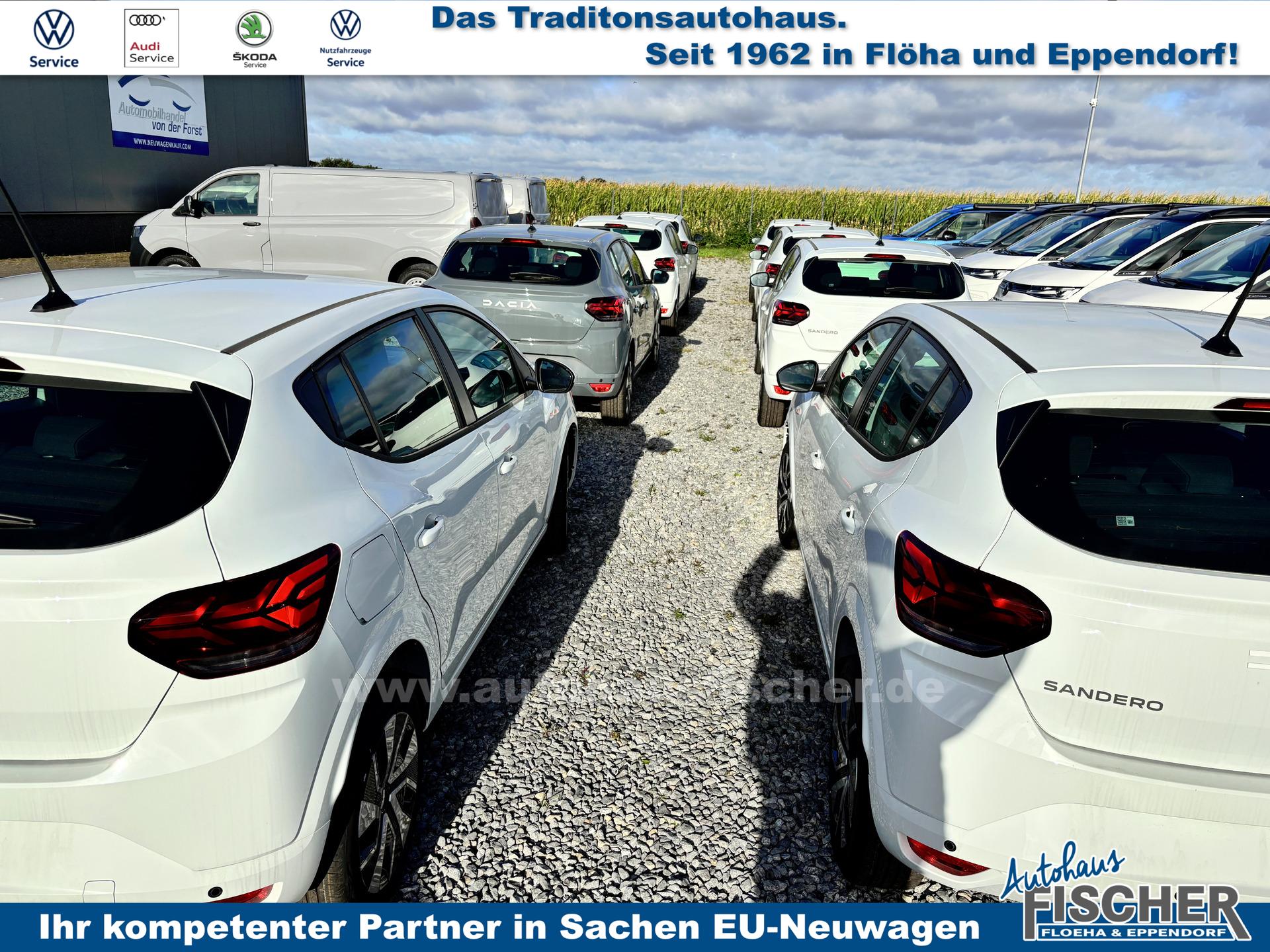 Dacia Sandero Expression 1.0 ECO-G 100 BENZIN/LPG-GASANLAGE, Weiß, Klimaanlage, NAVIGATIONSSYSTEM 8", Parksensoren VORNE + HINTEN, RÜCKFAHRKAMERA, TOTER-WINKEL-WARNER, Nebelscheinwerfer, Tempomat, Lederlenkrad, Armlehne, Spiegel elektr. einstell-/beheizbar, ZV mit Fernbedienung