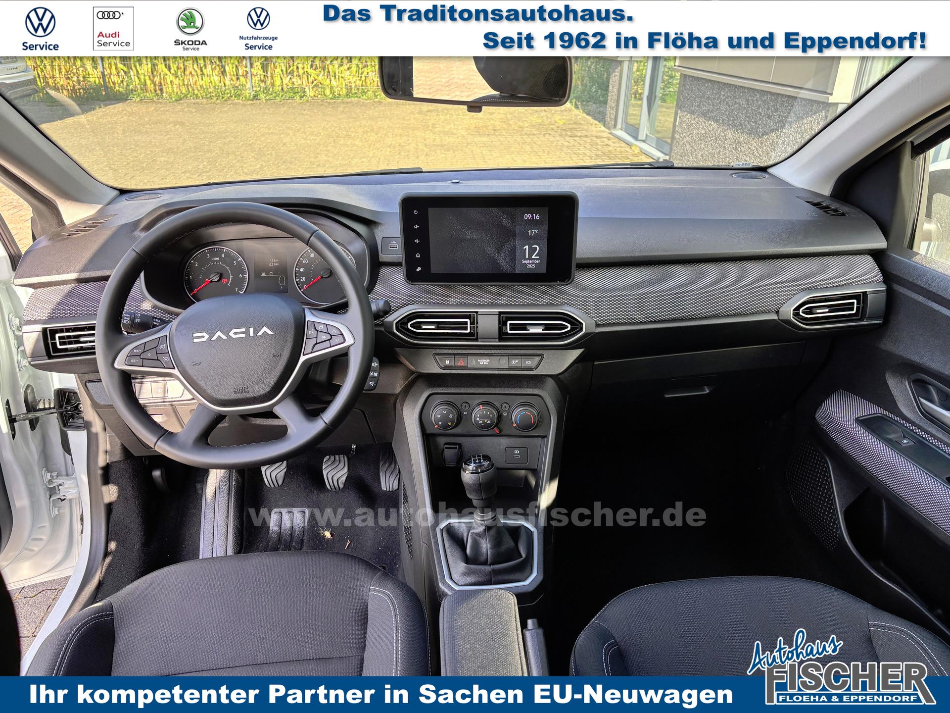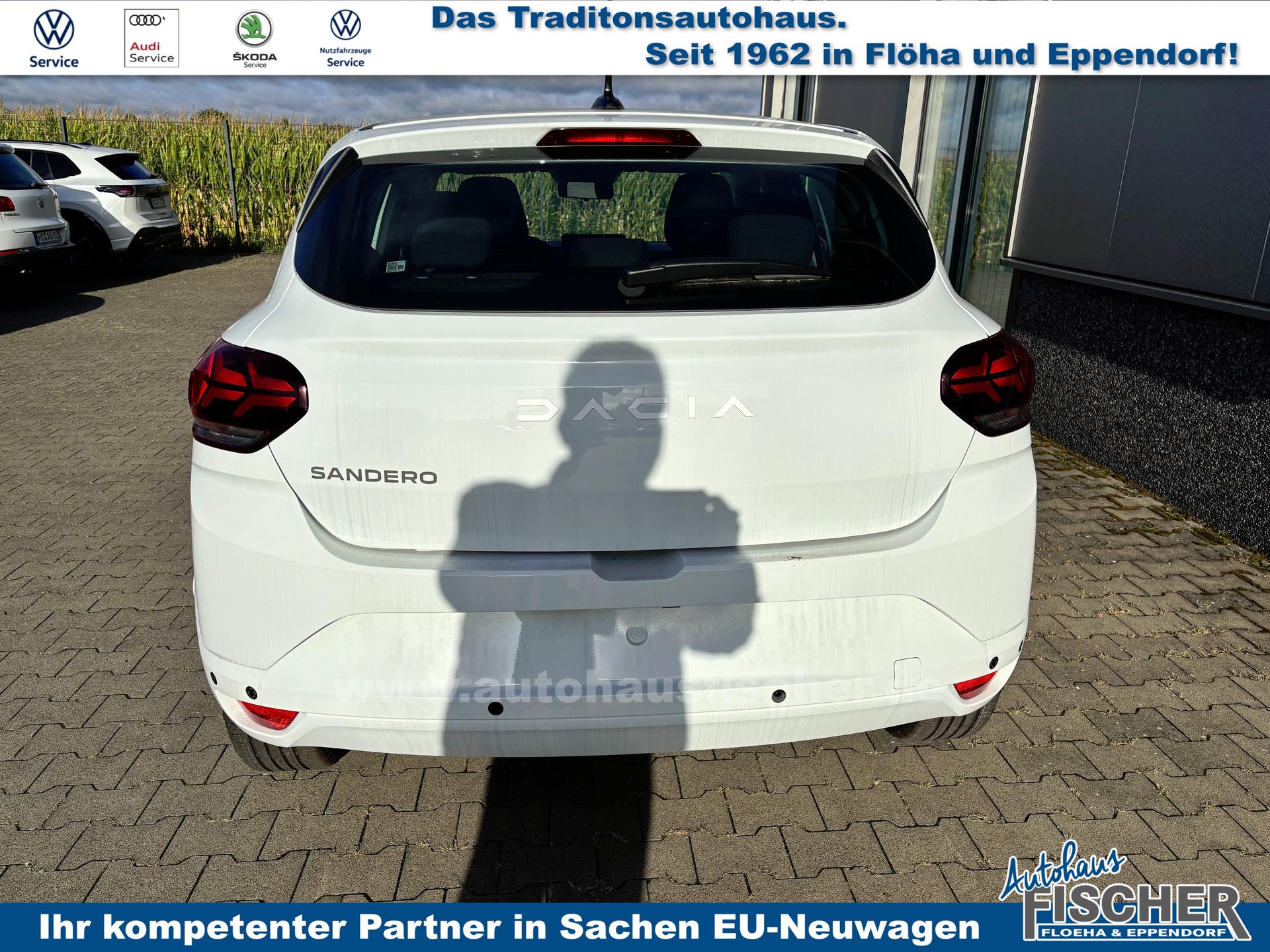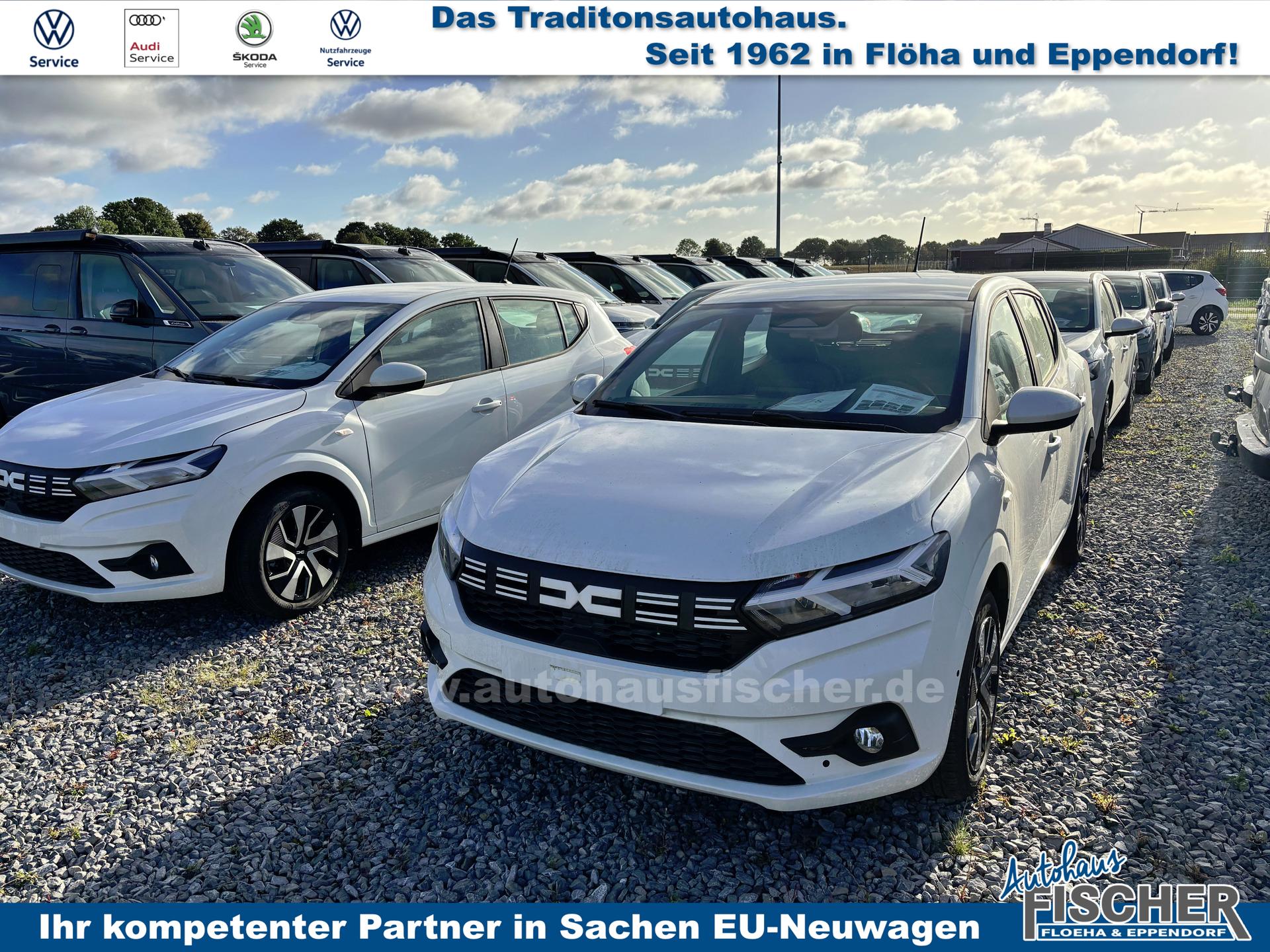 Dacia Sandero Expression 1.0 ECO-G 100 BENZIN/LPG-GASANLAGE, Weiß, Klimaanlage, NAVIGATIONSSYSTEM 8", Parksensoren VORNE + HINTEN, RÜCKFAHRKAMERA, TOTER-WINKEL-WARNER, Nebelscheinwerfer, Tempomat, Lederlenkrad, Armlehne, Spiegel elektr. einstell-/beheizbar, ZV mit Fernbedienung