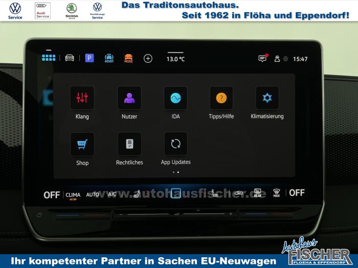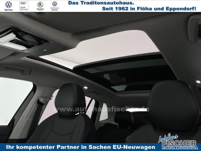 2 USB-C-Ladebuchsen an der Mittelkonsole hinten, 2 USB-C-Schnittstellen vorn, 8 Lautsprecher, App-Connect Wireless für Apple CarPlay und Android Auto, Digitaler Radioempfang DAB , Infotainment-Paket inkl. Navigationssystem Discover, Sprachbedienung, Telefonschnittstelle Comfort mit induktiver Ladefunktion, Touchscreen (32,2 cm/12,9 Zoll), 3D-LED-Rückleuchten, Abbiege- und Schlechtwetterlicht, Ambientebeleuchtung 10-farbig, Fahrlichtschaltung automatisch, mit LED-Tagfahrlicht sowie Begrüßungs- und Verabschiedungslicht, LED-Plus-Scheinwerfer, Leiste zwischen den Scheinwerfern und Rückleuchten sowie Türgriffmulden beleuchtet, Leuchtweitenregulierung dynamisch, Panorama-Ausstell-/Schiebedach mit Panoramadach hinten, Verbundsicherheitsglas geräuschdämmend für Türscheiben, Heck- und Seitenscheiben hinten abgedunkelt, Bedarfsorientierte Batterieladung, Innenspiegel automatisch abblendend, Mittelarmlehne vorn, Multifunktionslenkrad in Leder, beheizbar, mit Schaltwippen, Netztrennwand, Textilfußmatten vorn und hinten, Klimaanlage Air Care Climatronic mit Aktiv-Kombifilter, Bedienelementen hinten und 3-Zonen-Temperaturregelung, Design-Paket, Komfortpaket inkl. Memory-Funktion für Parkassistent, Paket Endless, Paket No Limit, Winterpaket inkl. Lenkrad beheizbar, 18 Leichtmetallräder Bologna in Schwarz, Oberfläche glanzgedreht, Tire Mobility Set: 12-Volt-Kompressor und Reifendichtmittel, Airbag für Fahrer und Beifahrer, mit Beifahrerairbag-Deaktivierung, Diebstahlwarnanlage mit Innenraumüberwachung, Back-up-Horn und Abschleppschutz, Elektronisches Stabilisierungsprogramm und elektromechanischer Bremskraftverstärker, ISOFIX-Halteösen für Kindersitze auf den äußeren Rücksitzen sowie auf dem Beifahrersitz, Kopf- und Seitenairbags vorn und hinten, Center-Airbag vorn, Notruf-Service, keine Registrierung notwendig, Dienst ist bei Auslieferung aktiviert, Wegfahrsperre elektronisch, Beifahrersitzlehne komplett umklappbar, Komfortsitze vorn, Rücksitzbank längs verschiebbar, -lehne asymmetrisch geteilt umklappbar, Neigung einstellbar, Vordersitze beheizbar, Vordersitze mit Höheneinstellung, Anschlussgarantie 3 Jahre / 100.000 km, 12-V-Steckdose im Gepäckraum, 230-V-Steckdose im Gepäckraum, 12-V-Steckdose in der Mittelkonsole vorn, Automatische Distanzregelung ACC, Berganfahrassistent, Digital Cockpit Pro, mehrfarbig, verschiedene Info-Profile wählbar, Elektronische Parkbremse inkl. Auto-Hold-Funktion, Fernlichtassistent Light Assist, Head-up-Display, Heckklappe mit sensorgesteuerter Öffnung und zeitverzögerter elektrischer Schließung, mit Fernentriegelung, Memory-Funktion für Parkassistent, Müdigkeitserkennung, Notbremsassistent Front Assist mit Fußgänger- und Radfahrererkennung, Parkassistent Park Assist inkl. Einparkhilfe, Regensensor, Reifenkontrollanzeige, Rückfahrkamera Rear View, Schlüsselloses Schließ- und Startsystem Keyless Access, Spurhalteassistent Lane Assist, Spurwechselassistent Side Assist, Umstellung Infotainment / Bordcomputer auf DE, Verkehrszeichenerkennung, Start-Stopp-System mit Bremsenergie-Rückgewinnung, Anhängevorrichtung anklappbar, mit elektrischer Entriegelung, inkl. Anhängerrangierassistent Trailer Assist, Außenspiegel elektrisch einstell-, anklapp- und beheizbar, Außenspiegelgehäuse und Türgriffe in Wagenfarbe, Dachreling silber eloxiert, EU-Fahrzeug mit Tageszulassung