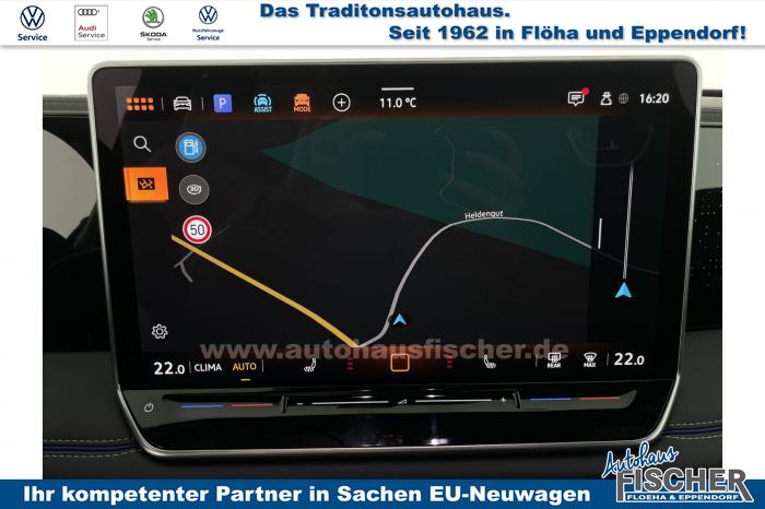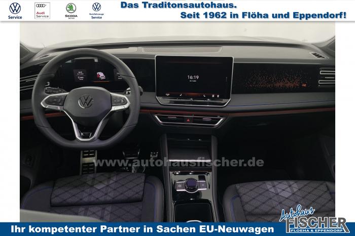 2 USB-C-Ladebuchsen an der Mittelkonsole hinten, 2 USB-C-Schnittstellen vorn, 8 Lautsprecher, App-Connect Wireless für Apple CarPlay und Android Auto, Car2X, Digitaler Radioempfang DAB , Infotainment-Paket inkl. Navigationssystem Discover, Sprachbedienung, Telefonschnittstelle Comfort mit induktiver Ladefunktion, Touchscreen (32,2 cm/12,9 Zoll), 3D-LED-Rückleuchten mit dynamischer Blinkleuchte, Abbiege- und Schlechtwetterlicht, Ambientebeleuchtung 30-farbig, in der Instrumententafel sowie in den Türen, Dekoreinlagen vorn durchleuchtet, Fahrlichtschaltung automatisch, mit LED-Tagfahrlicht sowie Begrüßungs- und Verabschiedungslicht, Leiste zwischen den Scheinwerfern und Rückleuchten sowie Türgriffmulden beleuchtet, Leuchtweitenregulierung dynamisch, Panorama-Ausstell-/Schiebedach mit Panoramadach hinten, Bedarfsorientierte Batterieladung, Dachhimmel schwarz, Innenspiegel automatisch abblendend, Mittelarmlehne vorn, Multifunktionslenkrad in Leder, beheizbar, mit Schaltwippen, Netztrennwand, Pedale in Edelstahl gebürstet, Textilfußmatten vorn und hinten, Klimaanlage Air Care Climatronic mit Aktiv-Kombifilter, Bedienelementen hinten und 3-Zonen-Temperaturregelung, Assistenzpaket IQ.DRIVE, Komfortpaket inkl. Park Assist Pro, Winterpaket inkl. Lenkrad beheizbar, 19 Leichtmetallräder Coventry in Schwarz, Oberfläche glanzgedreht, Volkswagen R, Tire Mobility Set: 12-Volt-Kompressor und Reifendichtmittel, Adaptive Fahrwerksregelung DCC Pro inkl. Fahrprofilauswahl, Airbag für Fahrer und Beifahrer, mit Beifahrerairbag-Deaktivierung, Diebstahlwarnanlage mit Innenraumüberwachung, Back-up-Horn und Abschleppschutz, Elektronisches Stabilisierungsprogramm und elektromechanischer Bremskraftverstärker, ISOFIX-Halteösen für Kindersitze auf den äußeren Rücksitzen sowie auf dem Beifahrersitz, Kopf- und Seitenairbags vorn und hinten, Center-Airbag vorn, Notruf-Service, keine Registrierung notwendig, Dienst ist bei Auslieferung aktiviert, Wegfahrsperre elektronisch, Kopfstützen vorn im Sitz integriert, Rücksitzbank längs verschiebbar, -lehne asymmetrisch geteilt umklappbar, Neigung einstellbar, Sport-Komfortsitze vorn, Vordersitze beheizbar, Vordersitze höheneinstellbar, ergoActive-Sitz auf der Fahrerseite, Vordersitze mit Massagefunktion, Anschlussgarantie 3 Jahre / 100.000 km, 12-V-Steckdose im Gepäckraum, Automatische Distanzregelung ACC, Berganfahrassistent, Digital Cockpit Pro, mehrfarbig, verschiedene Info-Profile wählbar, Dynamischer Fernlichtassistent Dynamic Light Assist, Elektronische Parkbremse inkl. Auto-Hold-Funktion, Fahrassistent Travel Assist, Spurhalteassistent Lane Assist und Emergency Assist, Head-up-Display, Heckklappe mit sensorgesteuerter Öffnung und zeitverzögerter elektrischer Schließung, mit Fernentriegelung, Memory-Funktion für Parkassistent, Müdigkeitserkennung, Notbremsassistent Front Assist mit Fußgänger- und Radfahrererkennung, Parkassistent Park Assist Pro, inkl. Einparkhilfe, Progressivlenkung, Regensensor, Reifenkontrollanzeige, Schlüsselloses Schließ- und Startsystem Keyless Access, Spurwechselassistent Side Assist, Umgebungsansicht Area View inkl. Rückfahrkamera Rear View, Umstellung Infotainment / Bordcomputer auf DE, Verkehrszeichenerkennung, Start-Stopp-System mit Bremsenergie-Rückgewinnung, IQ.LIGHT - HD-Matrix-Scheinwerfer, Anhängevorrichtung anklappbar, mit elektrischer Entriegelung, inkl. Anhängerrangierassistent Trailer Assist, Außenspiegel elektrisch einstell-, anklapp- und beheizbar, Außenspiegelgehäuse und Türgriffe in Wagenfarbe, Chromleisten an den Seitenfenstern, Dachreling silber eloxiert, EU-Fahrzeug mit Tageszulassung