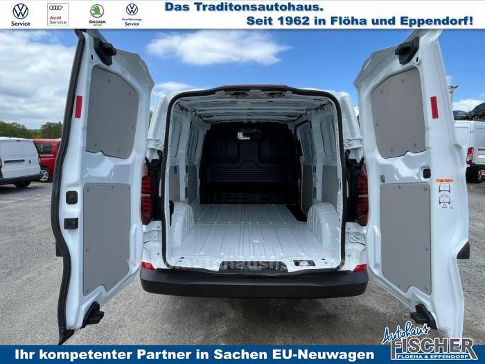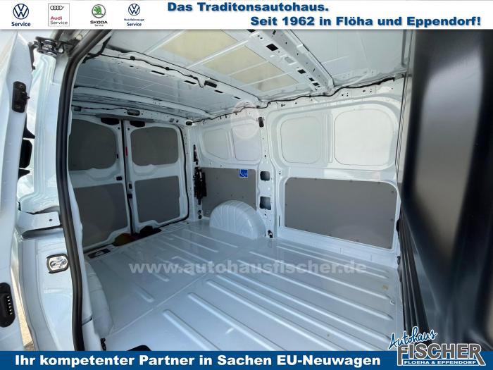 2x USB im Fahrerhaus, 4 Lautsprecher (2 Lautsprecher in der Instrumententafel und 2 Lautsprecher in den Fahrerhaustüren, Mobiltelefon-Schnittstelle, Radio 33 cm (13) Touch-Farbdisplay und Wireless App-Connect (Apple & Android), Fernlichtregulierung Light Assist, LED Frontscheinwerfer inkl. LED Tagfahrlicht und mit Abbiege- und Schlechtwetterlicht, LED-Rückleuchten, Frontscheibe in Verbundsicherheitsglas, wärmedämmend, 6 Verzurrösen zur Ladegutsicherung im Laderaum, Armlehnen für den Fahrersitz, Einstiegleiste Schiebetür Kunststoff, in Schwarz, Gummiboden im Fahrerhaus, Handschuhfach mit Klappe, Multifunktionslenkrad, Seitenverkleidung aus Kunststoff im Laderaum, halbhoch, Trennwand aus Metall, hoch, mit Fenster, oberer Teil der Trennwand auf Fahrerhausseite mit Stoffbezug, Klimaanlage Fahrerhaus (mit man. Regelung), Fahrerassistenzpaket, Fahrerhaus Sitzpaket 8A Einzelsitz in Stoff gestreift mit Beifahrerdoppelsitzbank, 16 Stahlräder, Notrad 155/70 R17 und Wagenheber, Airbags für Fahrer und Beifahrer, mit Beifahrer-Airbag-Deaktivierung, Elektronisches Stabilisierungsprogramm ESP, Notrufsysstem eCall, 2-Wege Lendenwirbelstütze für den Fahrersitz, manuell einstellbar, 6-Wege Fahrersitz, verstellbar, Beifahrerdoppelsitzbank mit Unterladefunktion und Klapptisch, Anschlussgarantie 2 Jahre / 100.000km, AGM-Fahrzeugbatterie 80 Ah, Digitales Cockpit, Einparkhilfe im Heckbereich, Elektrische Klemmleiste 12-Polig, Geschwindigkeitsregelanlage mit intellig. Geschwindigkeitsassistent, Müdigkeitserkennung, Notbremsassistent mit Fußgänger- und Radfahrererkennung mit Ausweichunterstützung & Abbiegeassistent, Spurhalteassistent Lane Assist, Verkehrszeichenerkennung und Falschfahrwarnung, Zentralverriegelung mit schlüssellosem Startsystem Keyless Start ohne Safesicherung, Zulässiges Gesamtgewicht 2.770 - 2.845 kg, Kraftstofftank 55 l Fassungsvermögen, Außenspiegel elektrisch einstell- und beheizbar, Exterieurpaket genarbte Anbauteile, Kühlergrill in Clear White, Heckflügeltüren, mit Verkleidung aus Kunststoffplatten (Türen bei Hochdach in dachhoher Ausführung), Schiebetür auf der Beifahrerseite, Schriftzug Transporter am Heck, Zierleiste schwarz, genarbt, EU-Fahrzeug mit Tageszulassung